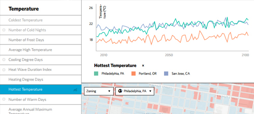 This week is the global climate summit in Paris. Sadly, we won’t be there, but over the next two years, we’re going to be doing our part on the climate change front. Azavea is honored to be awarded a Small Business Innovation Research (SBIR) grant from the U.S. Department of Energy for our climate change data service. This new $1.5 million research grant is our largest award to date, and it follows a Phase I feasibility grant of $225,000 also awarded by the U.S. Department of Energy to build a prototype for the Climate Impact Assessment Service, a web-based interactive local climate change visualization prototype, for a single city. Under this Phase II grant, we will expand the prototype to support climate change adaptation, management, and mitigation strategies in communities around the world.