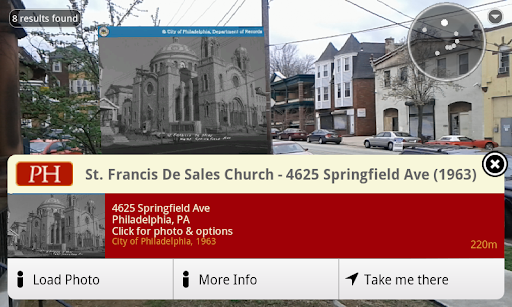 With ubiquitous maps and directions on our phones today, it’s easy to forget that when the first iPhone was released in 2007, it did not have a GPS (or even a compass). The GPS showed up in the iPhone 3G, but things got really interesting when the iPhone 4 was released in 2010. This phone added a gyroscope and an accelerometer. Now the phone could detect its location in three dimensions as well as its orientation and which direction the camera was pointed. This unlocked some interesting capabilities, and my colleague, Josh, used his 10% time to experiment with the idea of overlaying geometric objects in the camera view on the phone. Josh initially experimented with using the MIT ARToolkit and NYARToolkit. Azavea leveraged this initial prototype, a partnership with the City of Philadelphia Archives, and funding from the National Endowment for the Humanities (NEH) to develop a mobile app that would display historic photos overlaid on the phone’s camera. When we finished, you could see these historic photos overlaid on top of the camera view, and it was pretty amazing.