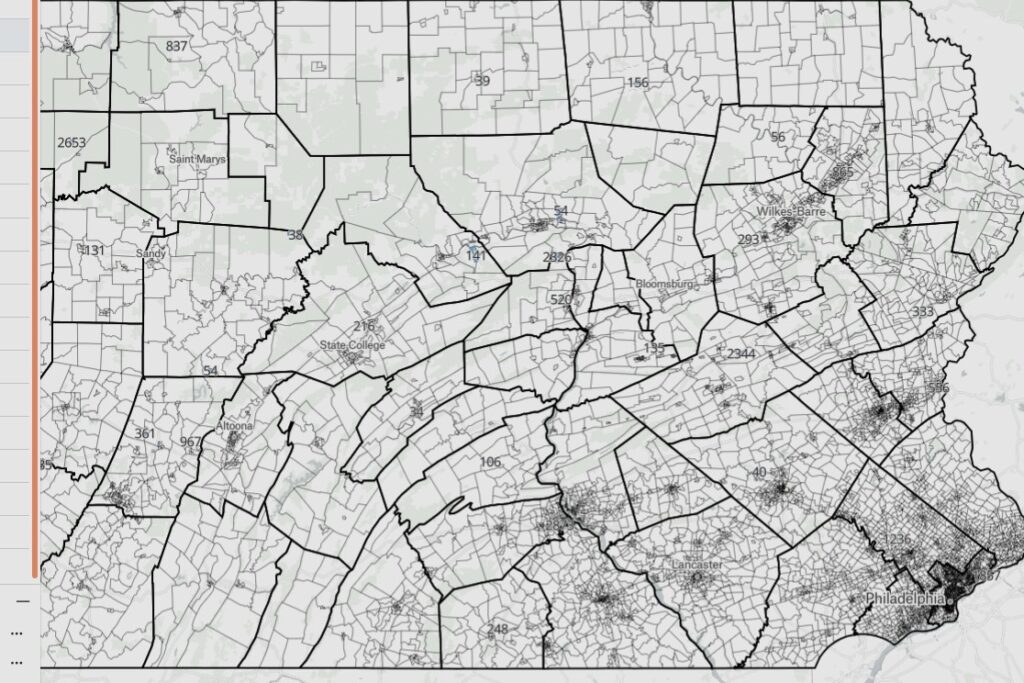 DistrictBuilder also lets you upload additional data sets into your map to add context as you draw and share your plan with others. As such, we have made the group quarters census data available for download, so that you can upload it to your maps in DistrictBuilder. By doing so, you can see how clusters of group population fall into current and proposed redistricting plans, and possibly understand where groups are being packed and cracked.