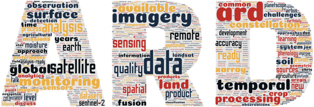 The 4th Analysis Ready Data (ARD) Workshop was held virtually in October 2021. Consisting of ten minute lightning talks packed into 1 hour sessions, participants from government and industry presented developments in “Analysis Ready Data”. Each day followed a specific theme such as calibration and validation, standards, time series, optical, SAR, and vegetation.