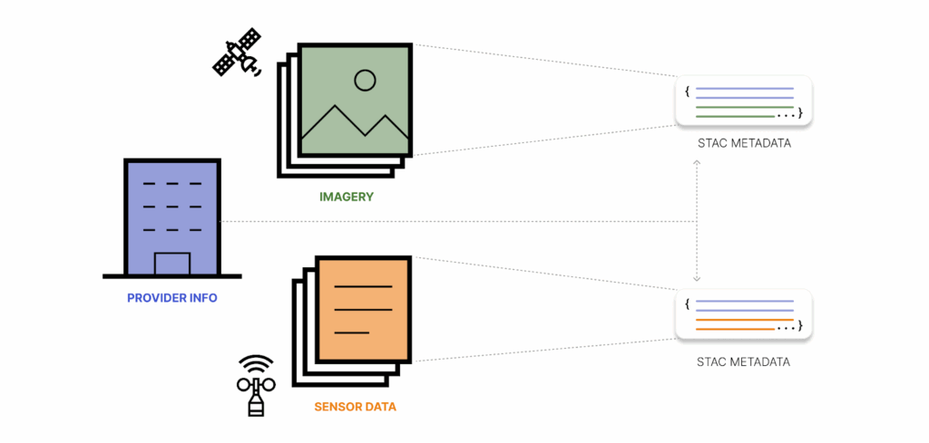 STAC can capture the metadata for all these diverse data products in the same consistent, readable format while leaving the data itself in place. Often the STAC Catalogs already exist and all you have to do is use it. If the catalog does not exist yet it can be created completely separate from the data itself.