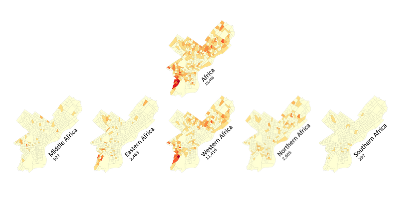 While working with the African Family Health Organization, an organization that provides health and human services for African immigrants in Philadelphia, I realized they had a substantial need to understand the distribution of African-born populations throughout the City.