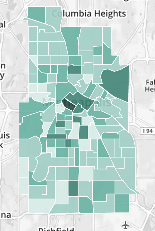 After clicking through to the source data table, you should see a table that displays the age breakdown for Minneapolis. You should notice a graphic above that says “Table Map Distribution”: