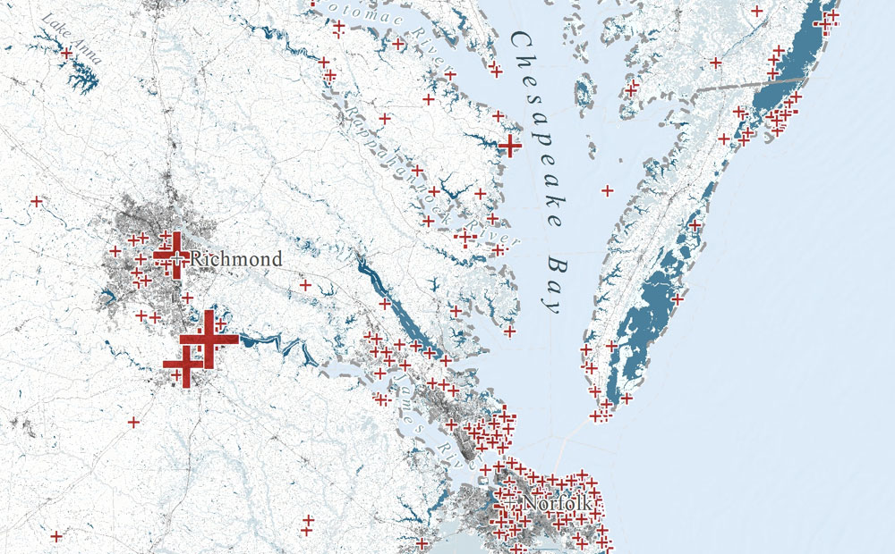 This blog post is based on the project I worked with National Aquarium, Identifying Patterns in Mid-Atlantic Marine Debris. The main dataset of this project came from the International Coastal Cleanup (ICC) events. The dataset has 2840 records from 2008 to 2015 after data cleaning. Below is a map displaying all the cleanup records onto one map. Each cross represents one clean up event. It is obvious that the cleanup events cluster at the urban area. That is to say, the dataset bias towards urban development. Although there are no crosses at some locations, that does not mean there are no marine debris. It might just because there were no people examining the area.