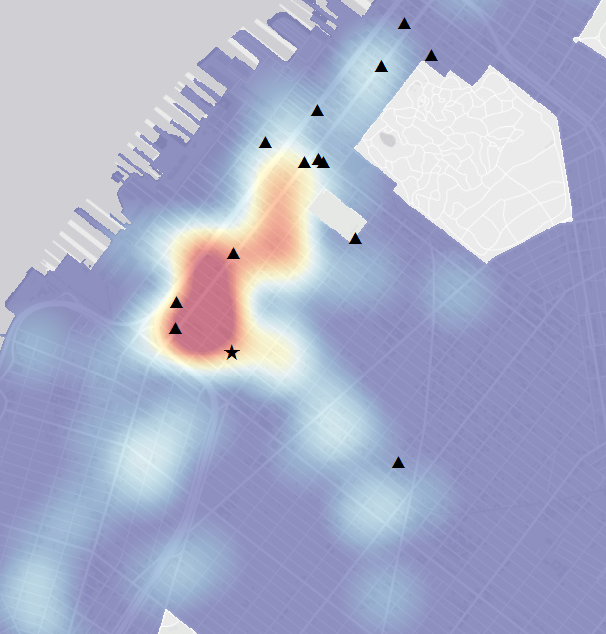 There are hardly any organizations in Sunset Park offering GED classes. This meant that making a density layer of organizations wouldn’t be helpful because it would be zero where most of the students live. On the other hand, there are many more vocational training programs than GED classes, so it seems like a density surface might be more meaningful in this case. But this raises some questions: