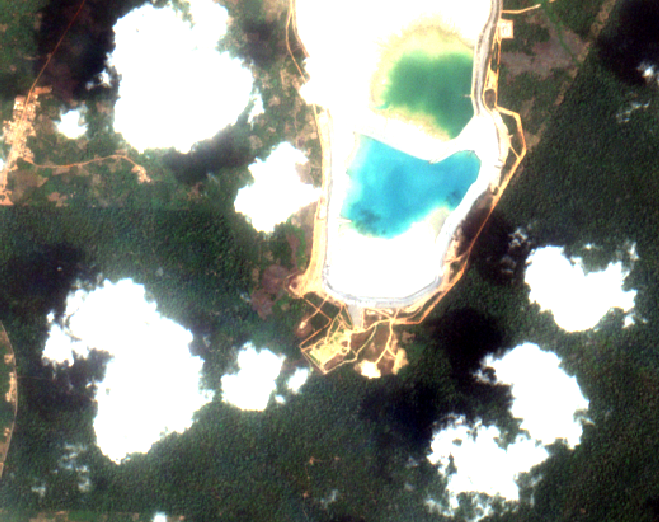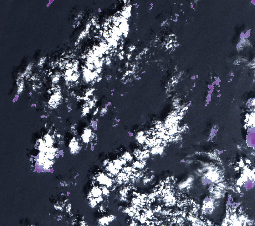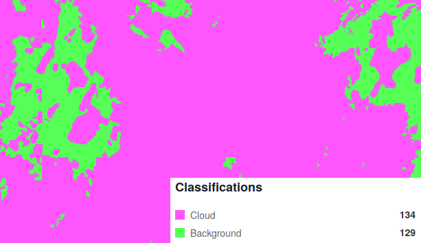 The labels (polygons corresponding to cloudy areas of each image) were generated by our partners at CloudFactory using GroundWork.
