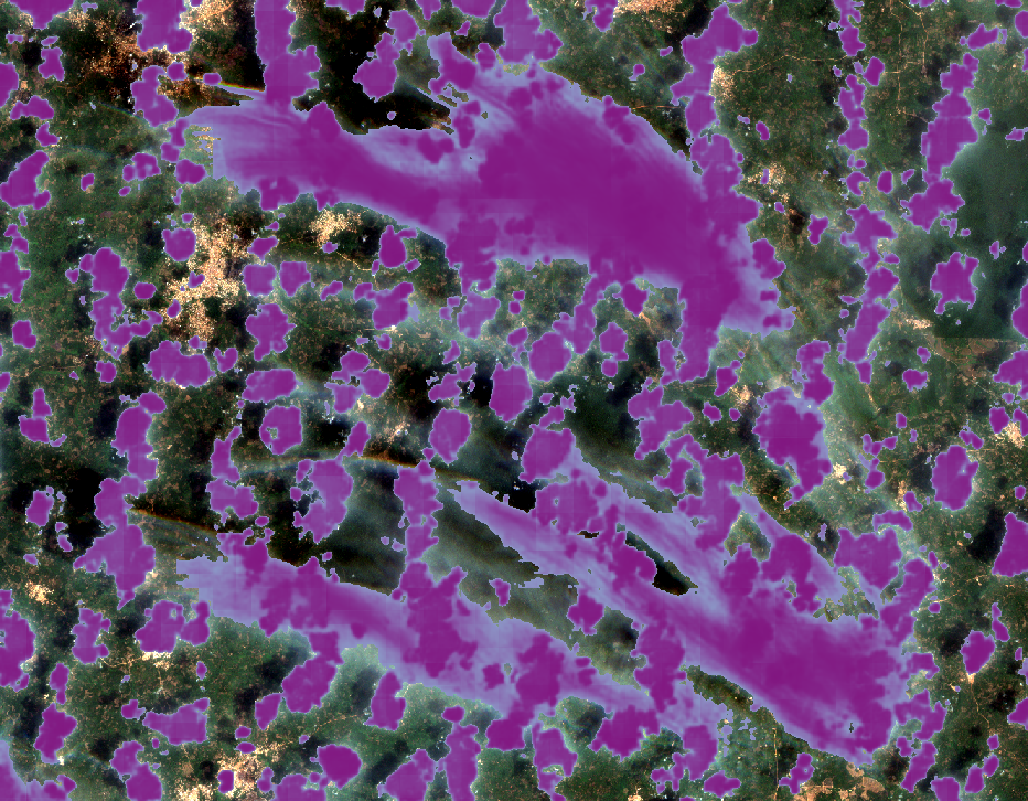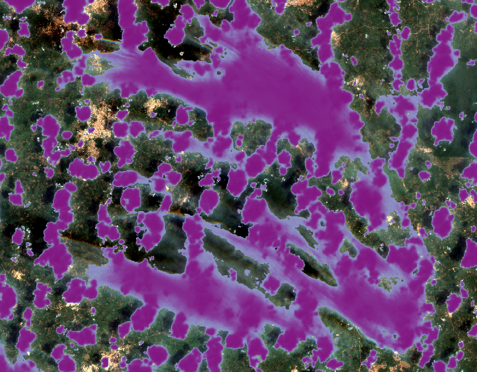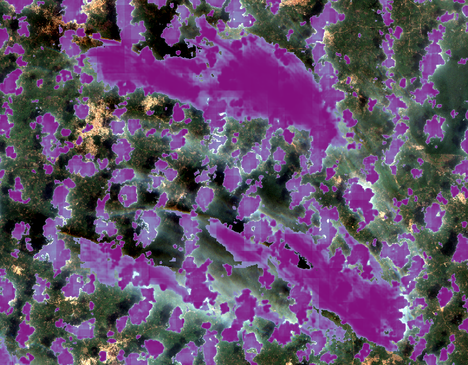 Occlusion by clouds can be a major inconvenience when trying to make use of satellite-based earth observation imagery. Being able to detect cloudy portions of images, infer cloudiness percentage, and generate cloud masks are all handy capabilities. Our approach to doing those things is to develop and use machine learning models to detect clouds. In this first-of-a-series post, we hope to whet your appetite for future posts by presenting a few quantitative results and some qualitative results from our effort. We also share some pointers to (work-in-progress) models that you can try for yourself.