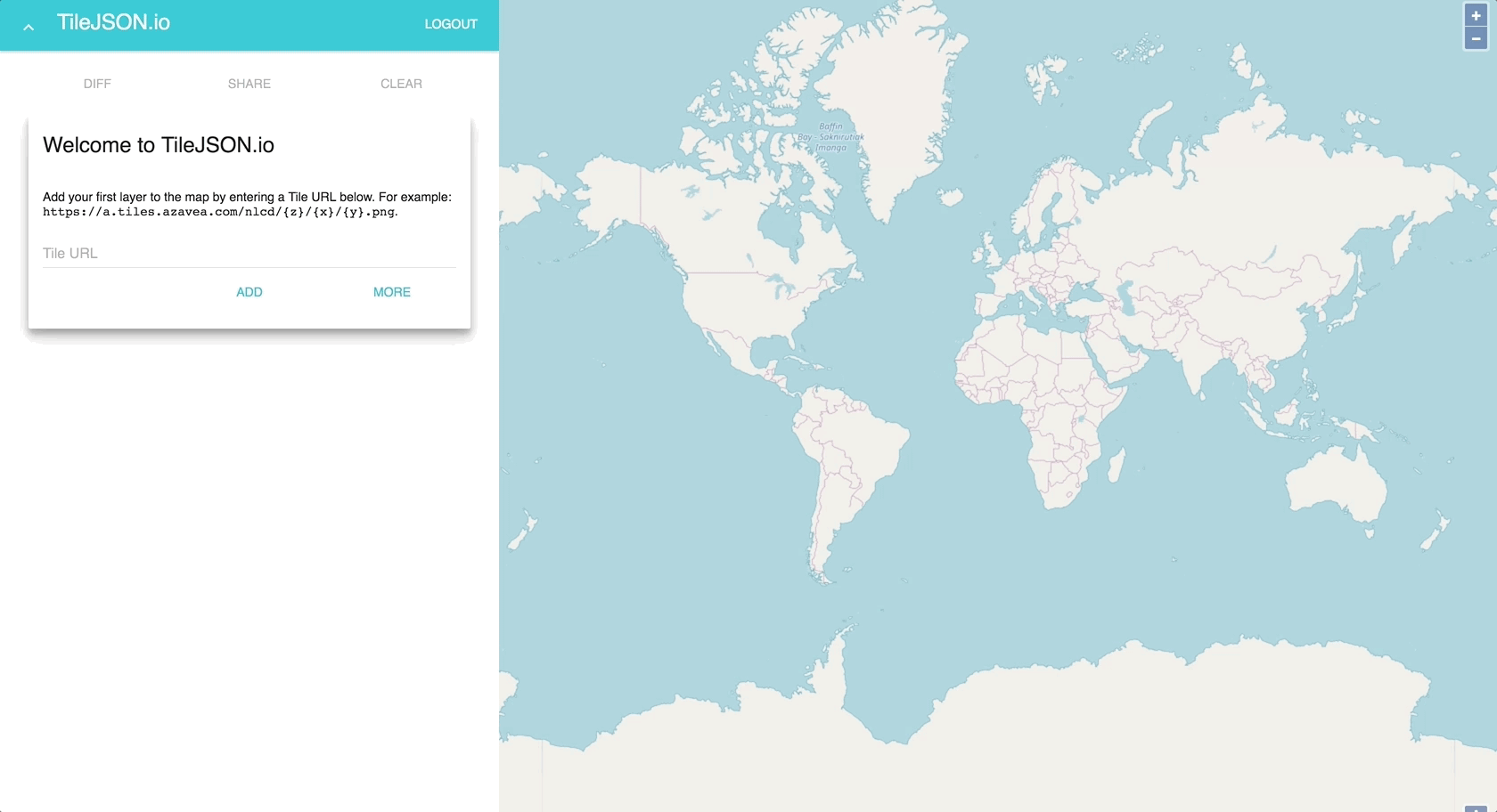 When you land on TileJSON.io, you will see a welcome message and the focus on an input. All you need to do is paste in a tile URL and hit enter.