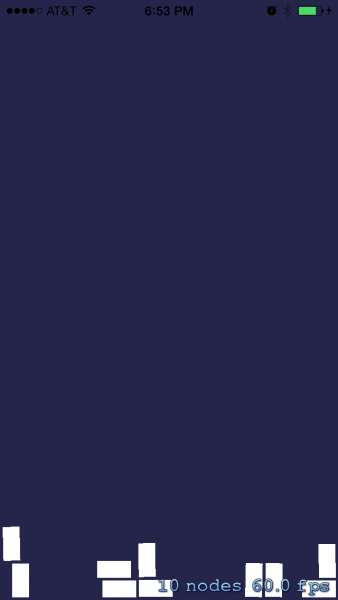 The reason I bring this up is because I did not see this behavior with Sprite Kit. The boxes undergoing elastic collisions bounced around without ever slowing down or stopping. So clearly Apple has made at least this change if they are indeed using Box2D, or perhaps my guess of pixels to meters ratio is farther off than I realize.