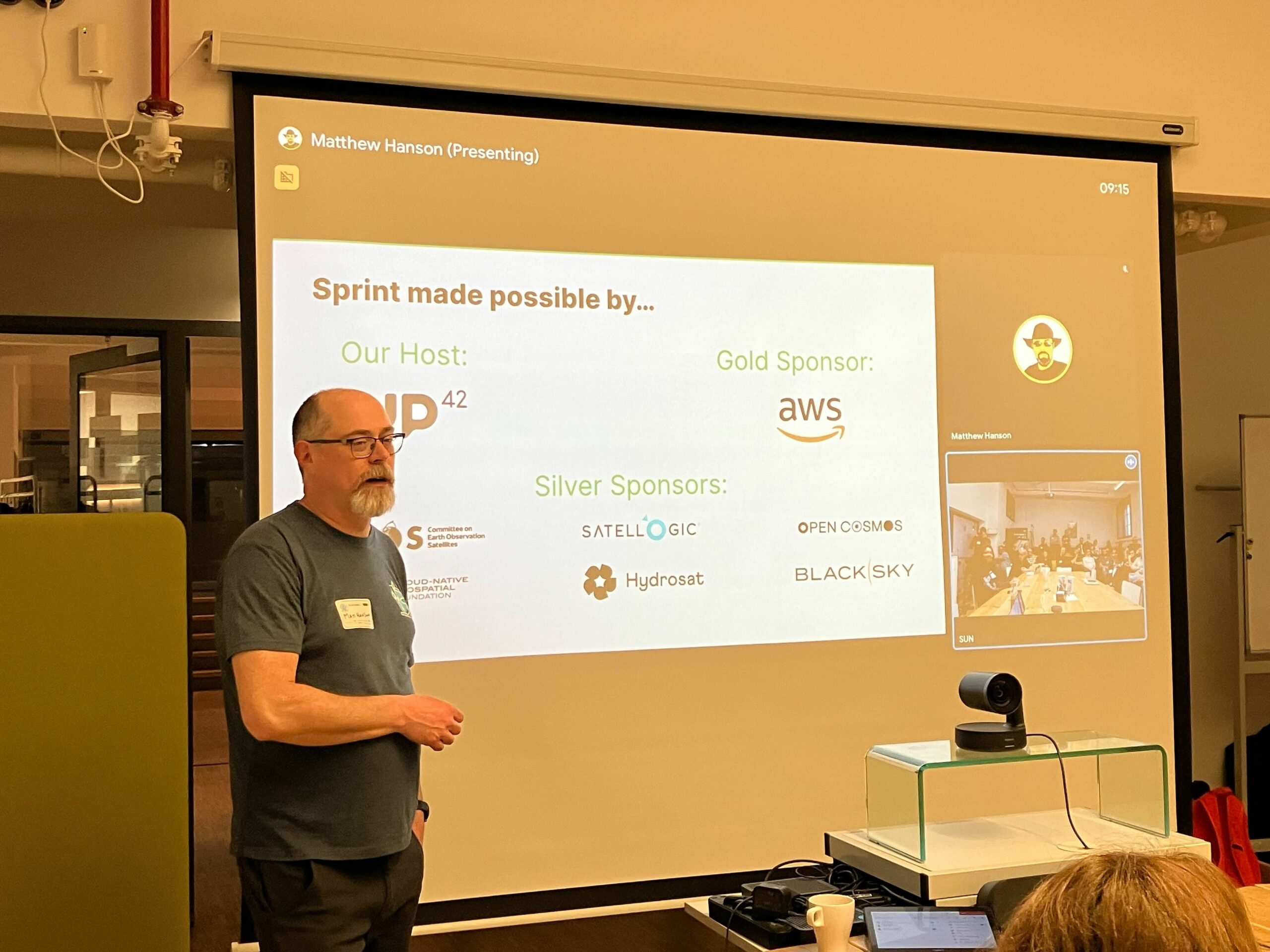 Before continuing, I want to express a big thanks to our sponsors. The Berlin sprint was longer and more complex, requiring additional resources and support, than any previous sprint we conducted previously. As the host, Up42 provided an excellent venue and provided valuable contributions. AWS was not only our gold sponsor, but also provided credits for the sprint and has been a valuable partner in this effort. CEOS and the Cloud-Native Geospatial Foundation both understand and support the value of interoperability across government agencies and commercial companies as we move more workloads into the cloud. As data providers, BlackSky, Hydrosat, Satellogic, and Open-Cosmos are looking at a tasking API as a way to improve the user experience and promote a better and more scalable way to sell their services.