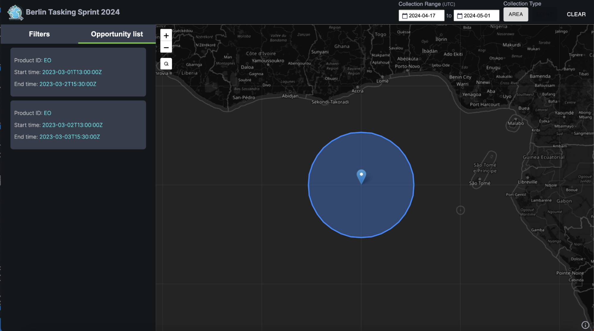 In addition to the spec, this sprint focused on developing open-source tooling for deploying and working with API implementations. We developed a deployable and extensible FastAPI project that implements the specification. This project serves as a backbone for creating custom proxy APIs to existing tasking APIs, enabling easier integration with different geospatial data providers. The sprint also included the creation of a map-based UI, allowing users to query and explore tasking opportunities from multiple providers in a user-friendly way.