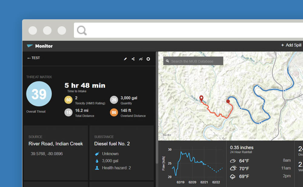 In partnership with Downstream Strategies, we created MUB Monitor – a comprehensive GIS-based tool that helps water professionals track spills, assess watershed threats, and make informed decisions.